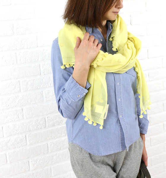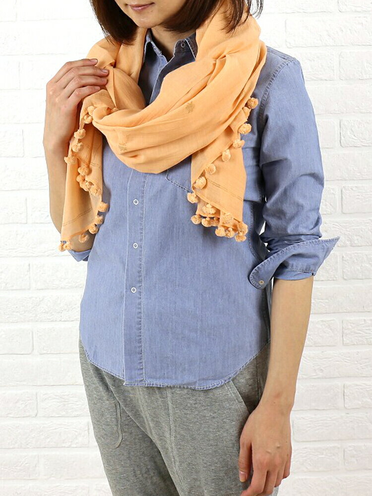 【ヌキテパ ne Quittez pas】コットン 星柄ジャカード ポンポン付き ストール・LC-5692-2701501【レディース】【小物】【旅行におススメITEM】【春夏アイテム】
