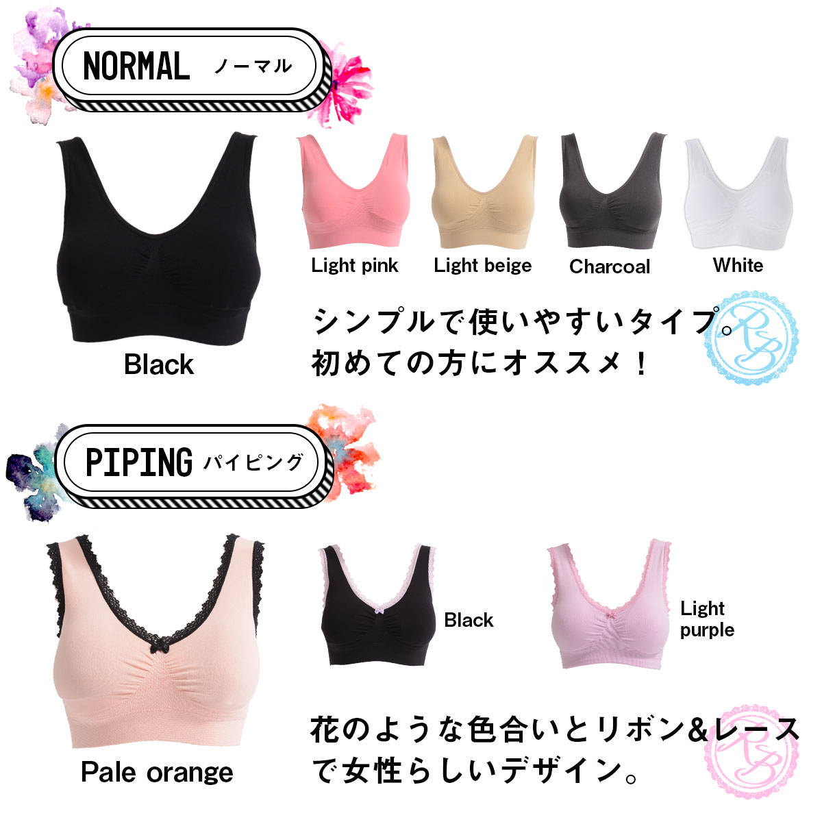 サイズ S-M:バスト72-87cm L-LL:バスト86-101cm 3L-4L:バスト100-115cm タイプカラー ノーマル×ブラック ノーマル×ホワイト ノーマル×チャコール ノーマル×ライトベージュ ノーマル×ライトピンク パイピング×ブラック パイピング×ライトパープル パイピング×ペールオレンジ ボーダー×ピンクグレー ボーダー×白グレー ボーダー×白ブラック メッシュ×ブラック 素材 本体:ナイロン90%、ポリウレタン10%、パッド:ポリウレタン100% 保証期間 商品到着後30日間にお申し出いただいた初期不良のみ交換対応させていただきます。