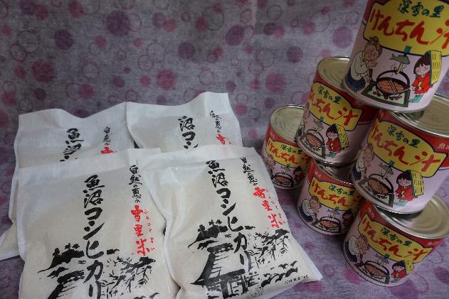 【ふるさと納税】魚沼コシヒカリ1kg4袋・けんちん汁6缶セット 【お米・コシヒカリ・缶詰・魚沼コシヒカリ・けんちん汁】