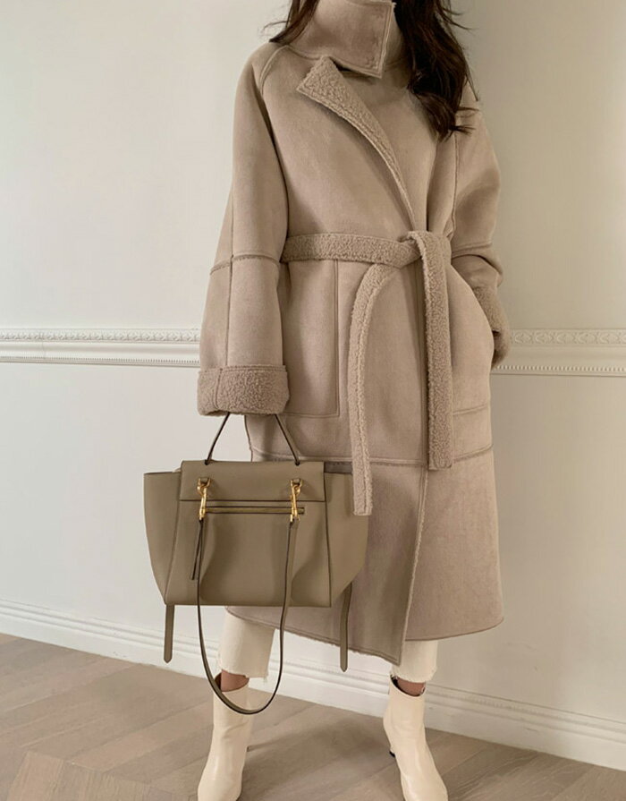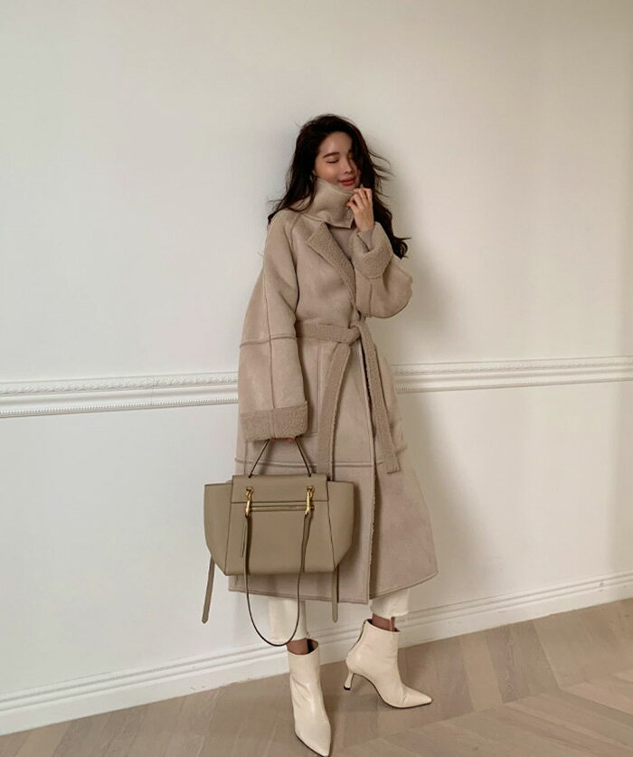 NANING9(ナンニング)ハイネックムートンロングコート【11/27up_go】ムートンコート ロング丈 コート ムートン ジャケット 冬 アウター カジュアル ロングコート 韓国アウター【5】