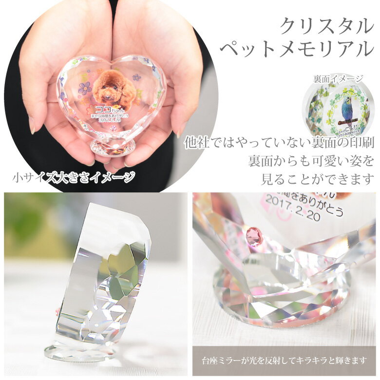 ペット 位牌 クリスタル ガラス KP-15 写真 カラー 両面印刷 誕生石 スワロフスキー 彫刻 フォト 遺影 仏具 供養 ペットメモリアル お位牌 手元供養 仏壇 葬儀 49日 虹の橋 思い出 名入れ ハート ダイヤ かわいい キラキラ きれい 犬 猫 うさぎ インコ 小動物.