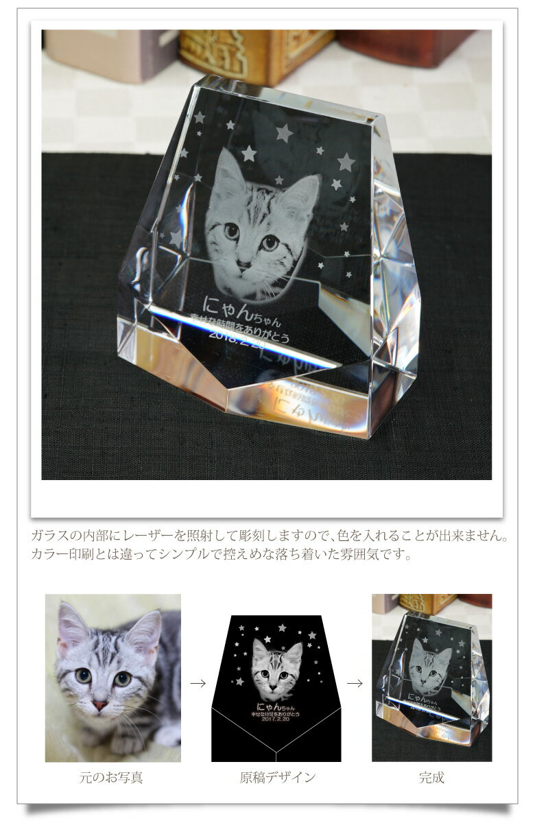 ペット クリスタル位牌 ダイヤカット 高さ160mm、愛しい姿をクリスタルに留めます。加工料、デザイン料無料、送料無料 いつまでも色あせません。 ペット位牌 クリスタル メモリアル